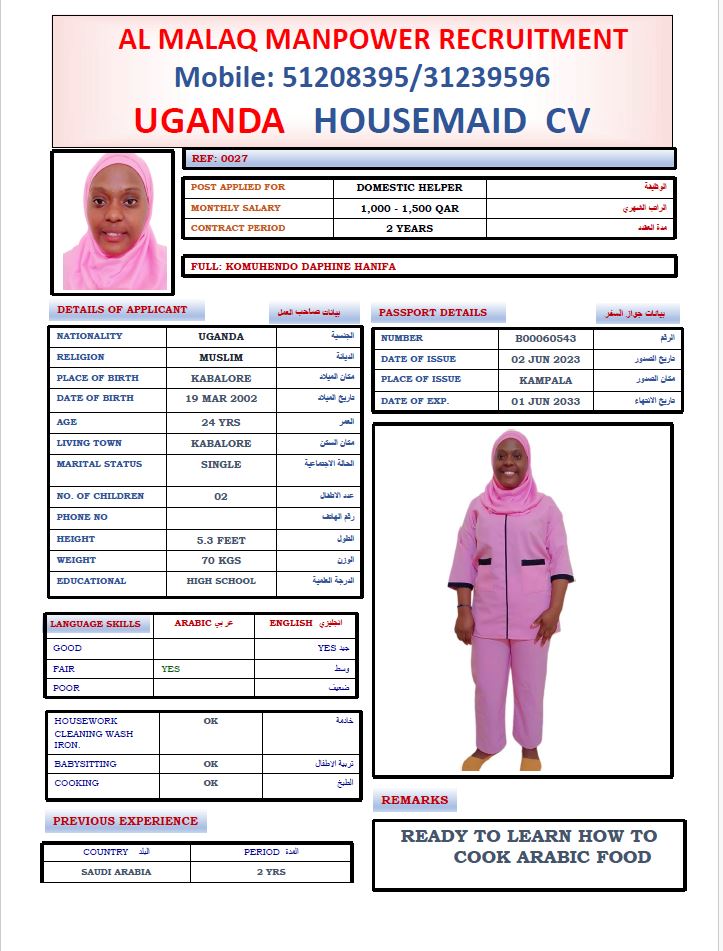 Maid KOMUHENDO DAPHINE HANIFA