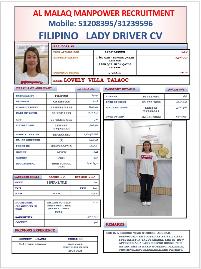 Maid JONALYN RAMOS TANDIR