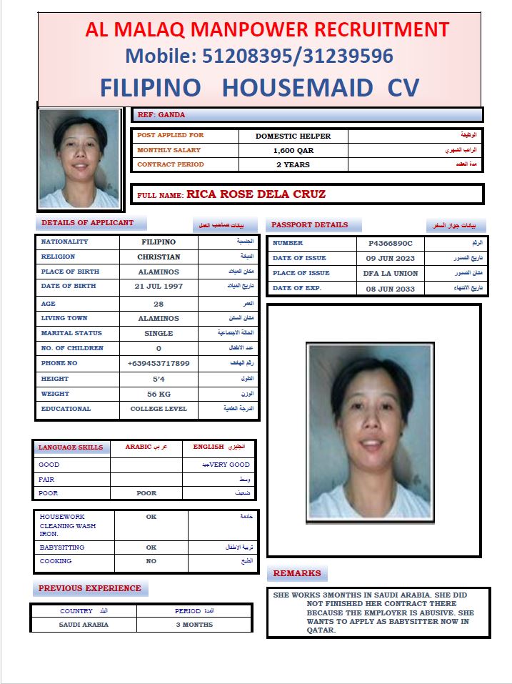 Maid RICA ROSE DELA CRUZ