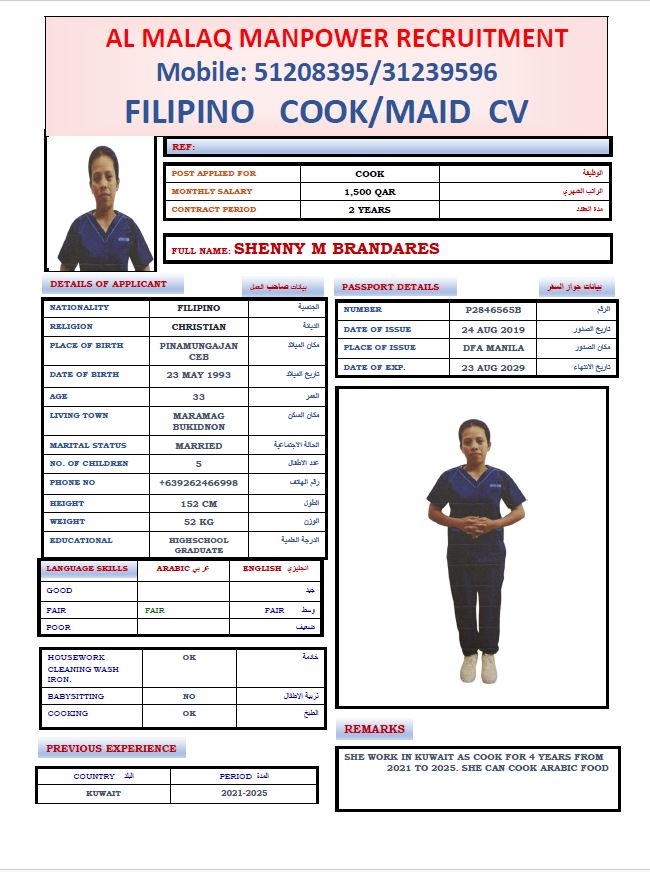 Maid MONTHLY CONTRACT COOKS