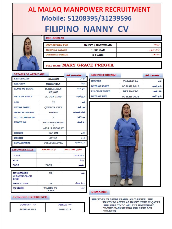 Maid MARY GRACE PREGUA