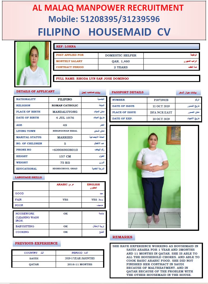 Maid RHODA LYN DOMINGO
